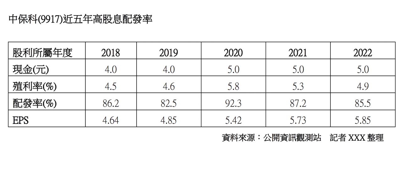 中保科股東會通過2022年財務報表,公司合併營收為153.6億元,稅後淨利26.8億元,每股稅後盈餘(EPS)5.85元創新高,較110年度成長2.09%。今年也將每股配發5元現金股利,維持中保科連續35年的穩健的配息政策,回饋股東及投資大眾,而2022年天下雜誌最新公布的兩千大調查當中,在服務業最會賺錢企業中,中興保全科技就名列第44名。