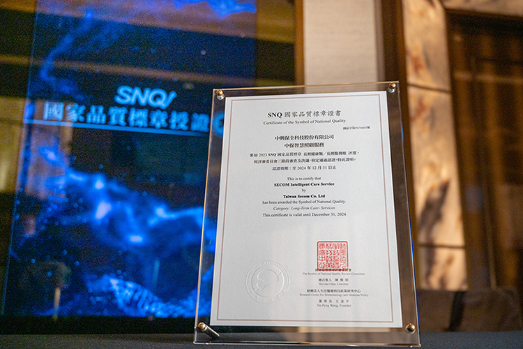 SNQ國家品質標章(Symbol of national Quality)被譽為台灣生技產業「奧斯卡」,中保科技集團以「中保智慧照顧服務」榮獲2023年SNQ國家品質標章,12月19日進行授證儀式,由中保科技集團立偉電子洪培修總經理出席代表授證。