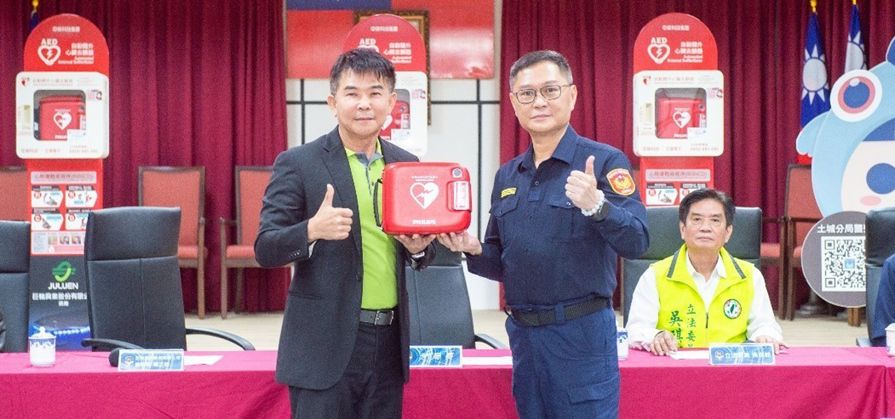 巨輪興業有感於近年來心血管疾病所引發的意外頻傳,威脅到民眾人身安全,在年底冬令時節,特捐贈七具自動體外心臟電擊去顫器(Automated External Defibrillator,簡稱AED)予土城分局,12月4日舉行捐贈儀式。