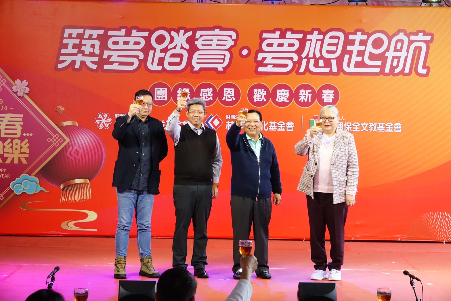 歲末年終,「圍爐」是家家戶戶最重要的團聚時刻,由林燈基金會、中保基金會、林孝信基金會共同舉辦年度最盛大的『感恩圍爐餐會』,在歷經連年的疫情攪局,終於在睽違四年後再度登場!集團總裁林孝信和林燈文教基金會執行長林純美領軍,偕同集團副總裁林明昇、董事長林建涵,於2月2日假中保科技宜蘭員訓中心席開50桌,以『築夢踏實』為主題,宴請來自宜蘭地區高中職及中小學等500多名師生,一同締造感恩並迎向新春的歡樂氛圍。