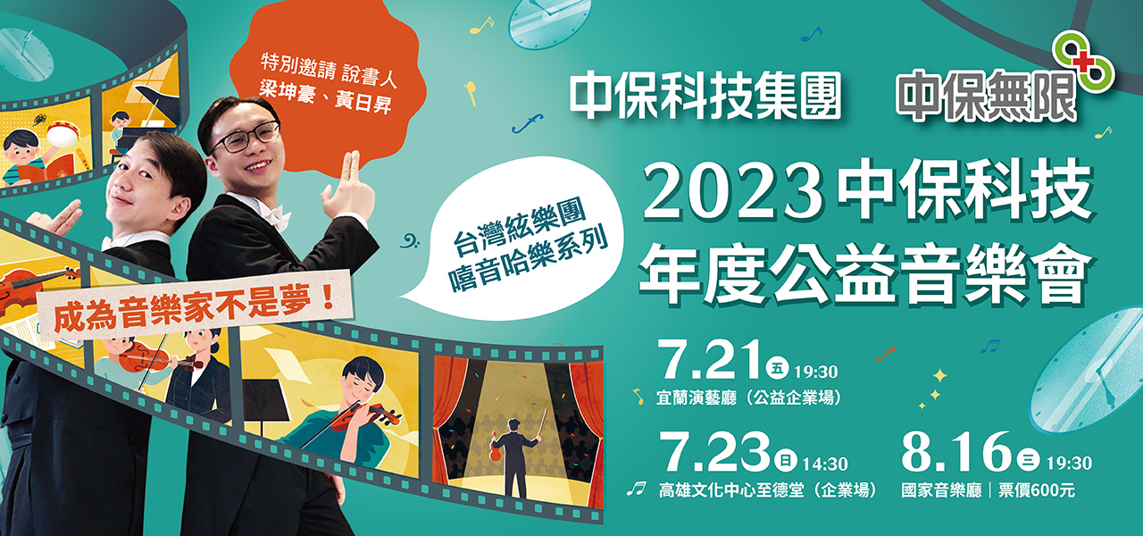 由台灣絃樂團主辦,每年只開放給中保科技集團的客戶獨家欣賞的「中保科技年度音樂會-嘻音哈樂系列」將在暑假熱鬧登場,今年度以「音樂家養成懶人包」為主題的親子音樂會,預定舉辦三場,分別於7月21日在宜蘭、7月23日高雄、8月16日在台北,預料將為大,小朋友留下美好難忘的回憶。